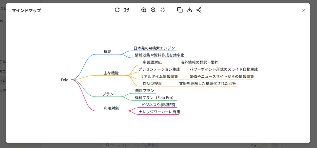 Felo AIの「図解・マインドマップ自動生成」とは?