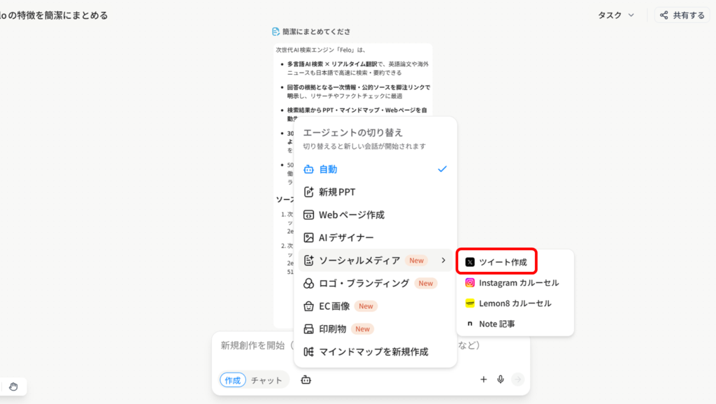 X(旧Twitter)やInstagramでの「図解コンテンツ」の生成も、Feloであれば簡単です。